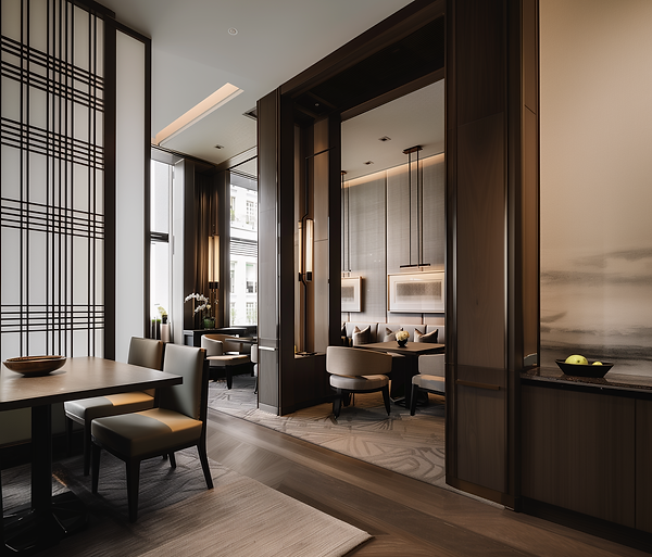 Our direction is eclectic using textures and graphic styles united by a quiet color palette and understated materials. The apartments interiors are a loose assemblage of soft grays and muted pastels while reception and lounges are using deeper tones of wood and gold.